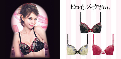 『ヒロインメイクブラ』は、サイズごとに厚みを変えた“谷間パッド”が上胸をしっかり押し上げて、ボリューミーなバストに。さらに、前中心が低めの設計でキレイな谷間をメイクします。