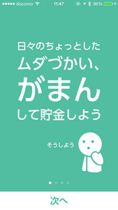 「GAMAN」はムダづかいを節約し、その浮いた金額を記録することで「つもり貯金」ができるアプリです。
