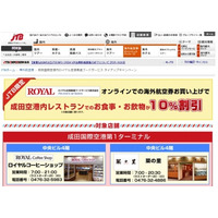 「JTB 海外航空券」サイトにて、キーワードは「タビナカ=旅行中でのお得感」。成田国際空港内の対象店舗の飲食代金が10%OFFとなるキャンペーンを実施