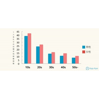 【App Ape 調査】人気アフ゜リ、男女・年代別平均日間起動回数 (15 年 4 月) 2015 年 5 月 21 日、FULL…