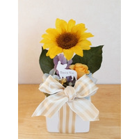 元気なイメージで黄色いお花の象徴であるひまわりは父の日のプレゼントにぴったり。職人が手作りしたメッ…