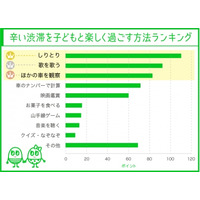 辛い渋滞を子どもと楽しく過ごす方法ランキングベスト3回答は、「しりとり」「歌う」「ほかの車を観察」