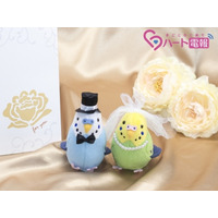 インコ好きの方に朗報!ウェディング姿のセキセイインコのぬいぐるみがお祝いの言葉を届ける電報