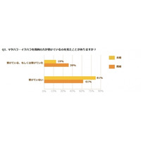 「周囲の人がマタハラ・イクハラを受けている(いた)」との回答、未婚女性が約20%なのに対し、既婚女性は約40%と差が開く結果に