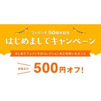 フェリシモ50周年記念「はじめましてキャンペーン」を開催、はじめてフェリシモのコレクションをご利用いただくとお買い物総額から「500円オフ!」