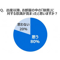 80%のママ、出産以降に“除菌意識がアップ”! “除菌”の盲点!? 出産以降『菌』が気になるのは「おもちゃ」「食卓」