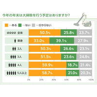 【2015年の年末大掃除事情】大掃除をする人は2人に1人。単身世帯では3人に1人という結果に。