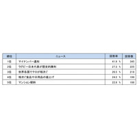 <「2015 年の振り返りと2016 年の動向」 主婦の意識調査>2015 年、主婦の関心を集めたニュースランキング1 位「マイナンバー」、2 位「ラグビー歴史的勝利」、3 位「世界各国でのテロ」