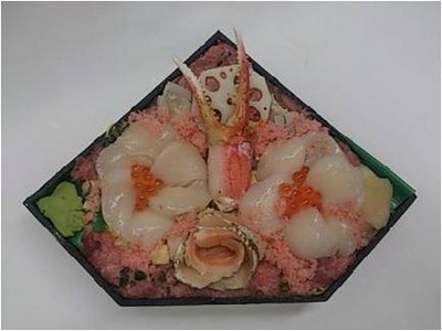 〈にぎり寿し彦丸〉かにツメVサインにいくら・かにで紅白を彩りました。紅白合格ちらし 980円