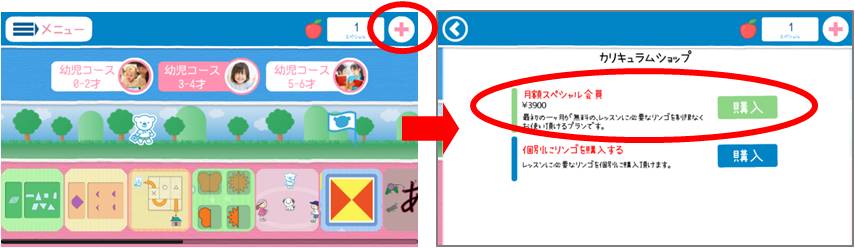 3)アプリ内の「カリキュラムショップ」から「月額スペシャル会員」購入をクリック。