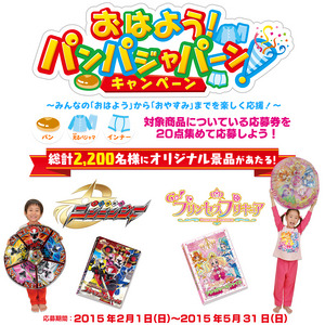 本キャンペーンは、2015年2月より放送開始予定の「手裏剣戦隊ニンニンジャー」「Go!プリンセスプリキュア」のパン・光るパジャマ・インナーに付いている応募券を集めて応募すると、オリジナルの景品が抽選で当たるキャンペーンです。お子様の大好きなキャラクターがモチーフになっている、パン・光るパジャマ・インナーは、いずれもお子様が自ら朝食をとり、お着替えをする習慣をサポートをする商品です。本キャンペーンは毎日の楽しい朝を通し、お子様の成長を応援致します。