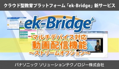 パナソニック ソリューションテクノロジー株式会社は、2015年2月3日(火)より、企業向けクラウド型教育プラットフォーム「ek-Bridge」のオプションとして、動画配信機能「ek-Bridgeストリームオプション」サービスの提供を開始しました。