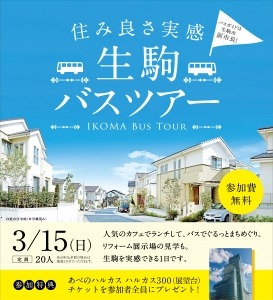 生駒市と近畿日本鉄道(株)(以下、近鉄)は、「暮らしやすいまち、生駒」の魅力を実感してもらうため、公園や病院、小学校など市内の施設を巡りながら、生駒市独自の子育て支援策や補助金を使ったお得な住み替え・リフォーム情報を紹介するバスツアーを3月15日(日)に開催します。