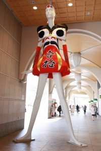 制作には学生15名がおよそ1ヶ月をかけ、身長6m10cmのナナちゃんのための特別コスチュームが完成。正面に「合格」、後ろに「必勝」のメッセージが受験生を元気づける力強いデザインです。