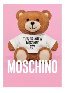帽子を発表したモスキーノの創始者、フランコ・モスキーノと分かち合っています。ちょっと生意気で、すごく愛らしいジェレミー・スコットのテディベアは、ハートウォーミングな微笑みをたたえ”This is Not a Moschino Toy”と書かれたTシャツを着ています。