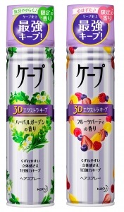 花王から、待望の香りつきケープが初登場!心はずむフルーツパーティと心やすらぐハーバルガーデンの2種の香りつき「3Dエクストラキープ」が2月16日から数量限定で発売!寒い中にも春の日差しが少しずつ感じられるこの季節に、朝の仕上げのケープで、髪から春を感じませんか?