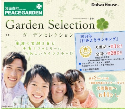 今回は2014年「住みよさランキング」で大阪府第1位(※)、豊かな自然環境と利便性のある「箕面市」で販売中の「箕面森町ピースガーデン~ガーデンセレクション~」のご紹介です。