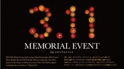 IHG・ANA・ホテルズグループジャパン(東京都港区、最高経営責任者:ファーガス・スチュアート、英国本部:IHG、以下、IHGANA)は、東日本大震災で亡くなられた方々に哀悼の意を捧げるとともに被災地および日本の復興を表し、さらに世界の災害をサポートする活動として、全国のグループホテル(インターコンチネンタル、ANAクラウンプラザホテル、ホリデイ・イン、ANAホテル)の合同による3.11メモリアルイベントを実施し、各ホテルでは、2月28日(土)から3月31日(火)の期間を中心に、3.11メモリアルイベントとしてチャリティーコンサートまたはチャリティキャンドルアートの展示を行います。