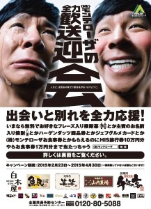 「白木屋」「魚民」「笑笑」などを展開する株式会社モンテローザ(本社 東京都武蔵野市 代表取締役 大神輝博)は、平成27 年2 月23 日から平成27 年4 月30 日まで、全国の約2,000 店舗で歓送迎会のご予約キャンペーン「(株)モンテローザの全力歓送迎会」を開催します。