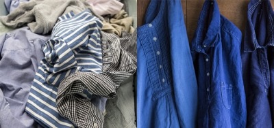 (全て、無印良品の使用済衣料を回収し染め直した、一点ものとなります。)