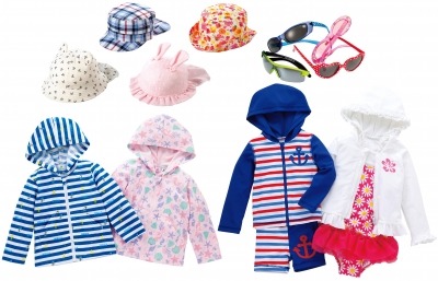 全国のトイザらス、ベビーザらス店舗及び「トイザらス・ベビーザらス オンラインストア」(http://www.toysrus.co.jp/)では、紫外線の強くなる季節に向けて、3月上旬より、UVカット機能付きウェア、ファッション小物の販売を開始します。1歳から3歳くらいまでのお子様を対象に、UVカット率90%以上の帽子をはじめ、UVプロテクション100%のサングラス、UPF50+のスイムウェアなど、紫外線からお子様を保護するアイテムが続々登場します。さらに、4月上旬より、お子様に人気のディズニーキャラクターをデザインに使用したUVカット率90%以上のパーカーを発売。お子様の様々な生活シーンでご使用いただける商品が勢揃いします。