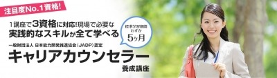 本講座では、一般財団法人日本能力開発推進協会(JADP)が定める、「キャリアカウンセラー資格」「メンタルキャリアカウンセラー資格」「シニアキャリアカウンセラー資格」の3資格の取得が目指せます。この資格は、現代のキャリアカウンセラーに求められる「メンタルヘルスケア」「シニア支援」のニーズに対応でき、あらゆるクライエントに対して、的確なキャリア支援のできるスペシャリストであることを証明してくれます。