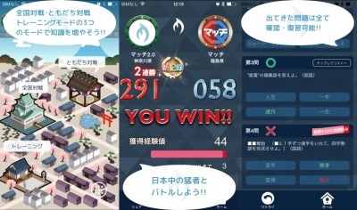 ・β版では日本史だけでしたが、複数ジャンル対応し、世界史、漢字、一般常識をテーマに対戦ができるようになりました。