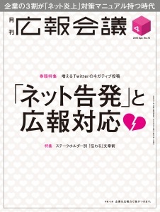 ■本調査は、広報・PRの専門誌『広報会議』(毎月1日発売)の2015年4月号(2015年2月28日発売号)の巻頭特集企画「増えるTwitterのネガティブ投稿 『ネット告発』と広報対応」の中で実施したものです。