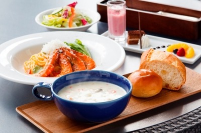 上記メニューはいずれも、クラムチャウダー、サラダ、パン、デザートがセット(消費税・サービス料込み)
