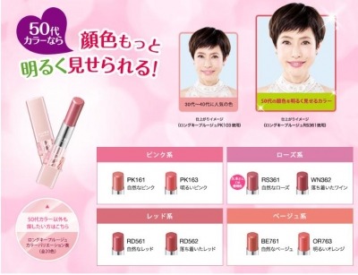 そんな悩みを感じている方に向けて、2015年3月3日、食事しても色とうるおいが続く 「ロングキープルージュ」から、50代~向けカラーとして8色を新発売いたします。
