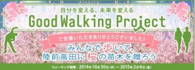 サンスター株式会社(本社:大阪府高槻市、代表取締役社長 吉岡貴司)は、糖尿病とのつきあい方を支援するサイト『糖尿病とうまくつきあう』で糖尿病患者の会員の健康増進と社会貢献“ソーシャルグッド”を結びつけた活動「Good Walking Project~みんなで歩いて陸前高田に桜の苗木を贈ろう~」を実施、参加者の運動量に応じて『認定特定非営利活動法人 桜ライン311*1』に桜の苗木を贈ることになりました。糖尿病とうまくつき合って血糖値をうまくコントロールするためには、適度な運動が必要ですが、この活動は、参加者が歩いた歩数の合計数に応じてサンスターが東日本大震災の被災地の植樹プロジェクトに寄付を行うというもので、健康増進や血糖値改善のためのウォーキング活動の参加者が増え、参加者の運動量が増えることで、よりたくさんの植樹の寄附につながるしくみです。