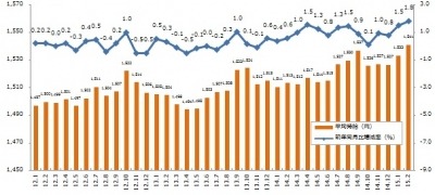 関東エリア(1,604円/前月比+6円・0.4%増、前年同月比+27円・1.7%増)、東海エリア(1,346円/同-3円・0.2%減、同+6円・0.4%増)、関西エリア(1,369円/同+28円・2.1%増、同+20円・1.5%増)と三大都市圏すべてのエリアで前年同月比プラスとなりました。