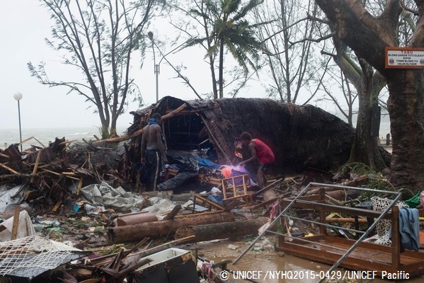 サイクロン・パムの直撃を受けた太平洋諸島のバヌアツで、多くの子どもたちが緊急の