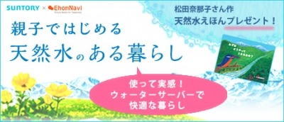 絵本の情報・通販サイトを運営する株式会社絵本ナビ(本社東京都渋谷区/代表取締役社長金柿秀幸、以下絵本ナビ)は、平成26年7月よりサントリーフーズ株式会社(本社東京都中央区/代表取締役社長土田雅人、以下サントリーフーズ)と「天然水えほんプロジェクト」を進めてまいりました。