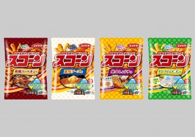 1987年発売の「スコーン」は日本生まれのコーンスナックとして、25年以上に渡って愛され続けてきたロングセラーブランドですが、この度、“日本生まれ”という特長をより感じていただけるように「スコーン」ブランドをリニューアルし、2015年3月30日より「スコーン 和風バーベキュー」、「スコーン 濃厚チーズ味」、「スコーン 絶品しょうゆ味」、「スコーン サワークリームオニオン味」を発売します。