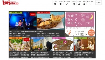 「レッツエンジョイ東京」は、グルメ、ショッピング、レジャー、アミューズメントなど刻々と変化する東京の様々な魅力を発信し、東京でのおでかけが「もっと楽しく!もっと便利に!」なる情報検索サイトとして、月間1億2,000万ページビュー、ユニークユーザー数480万人(2015年2月現在)ものお客様にご利用いただいております。