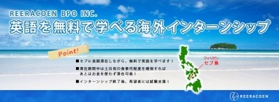 そこでREERACOEN BPOでは、若者の「グローバル志向」をご支援すべく、ネオキャリアグループが海外とりわけアジア各国(シンガポール、タイ、上海、ベトナム、フィリピン他)において人材サービスを中心とした事業を展開してきたノウハウを活かし、アジア圏で比較的訛りが少なく流暢な英語を学ぶことができると言われるフィリピンのセブ島にて、若者の金銭的な負担を軽減した無料の海外インターンシップへ参加する春の留学生を募集することにいたしました。