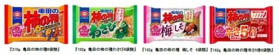 『146g亀田の柿の種』『130g亀田の柿の種100%』『115g亀田の柿の種わさび100%』『105g亀田の柿の種梅しそ100%』『93g亀田の柿の種』『89g亀田の柿の種わさび』『75g亀田の柿の種梅しそ』『81g亀田の柿の種』『73g亀田の柿の種わさび』『64g亀田の柿の種梅しそ』『76g亀田の柿の種4連』『310g亀田の柿の種10袋詰』『50gたねバルめんたいチーズ味』『50gたねバル黒胡椒チーズ味』
