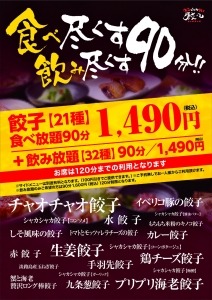 看板餃子のチャオチャオ餃子を筆頭に、21種類の餃子が90分間食べ放題(お席は120分まで)1,490円(税込)、