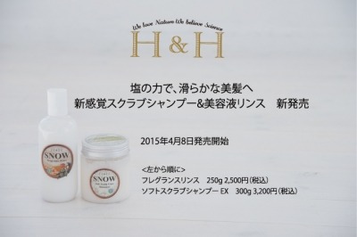 この度、株式会社H&H INTERNATIONALは、2015年4月8日(水)よりH&H SNOWスカルプヘアシャンプーとアフターフレグランスリンスを発売いたします。※2014年12月24日~H&H公式HPにて、WEB限定で販売スタート