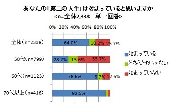 60代の7割強が「第二の人生は始まっている」と回答。男性は「自身の定年退職」、