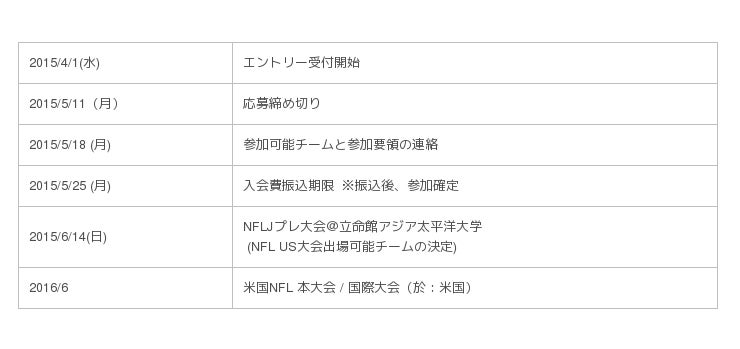 ・優秀チームにはNFL US主催の国際大会(2016年6月)への出場権を付与