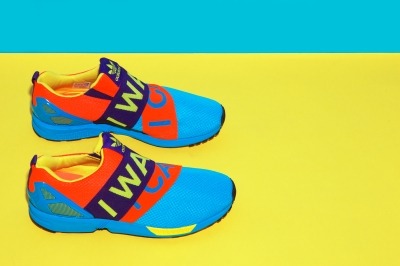 「ZX FLUX I Want I Can」は、1980年代に展開したランニングシューズ「ZX シリーズ」に搭載された、画期的な機能「トルションシステム」の広告キャンペーン「I Want I Can」にインスパイアされたデザイン。コレクションで目をひく、色鮮やかなカラーコンビネーション、当時のキャンペーンのグラフィックをモチーフにしたインソールライナーなど、細部にもこだわったデザインで、広告キャンペーン「I Want I Can」のイメージを再現。足を覆う紐のないアッパーのスリッポンモデルには、「I Want I Can」の太字のテキストグラフィックを大胆に施した、伸縮するストラップを搭載。