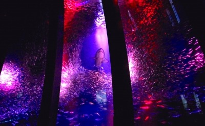 群れをなすイワシに割って入るシロワニやエイなどの大型捕食者に対して機敏で激しい動きをみせる群れの様子に、壮大な音楽と照明と合わせて、お楽しみください。