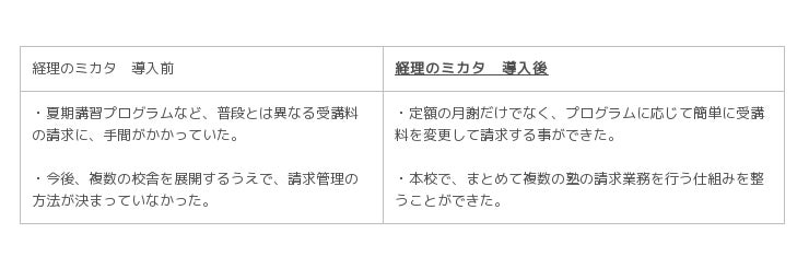 「経理のミカタ」は学習塾における集金管理ソリューションとして、ご好評を頂いております。