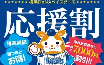 株式会社ディー・エヌ・エー(本社:東京都渋谷区、代表取締役社長兼CEO:守安 功、以下DeNA)の子会社である株式会社エアーリンク(本社:東京都新宿区、代表取締役社長:中野 正治)が運営するオンライン総合旅行サービス「DeNAトラベル」(URL:http://www.skygate.co.jp/)は、プロ野球セ・リーグ公式戦における横浜DeNAベイスターズの戦績に応じて旅行商品が割引になる“応援割”を2015年4月13日(月)から開始しました。