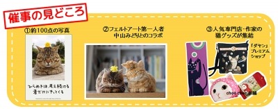 「人生はニャンとかなる!」の写真作品に加え、新規オリジナル作品など約100点におよぶ作品を展示。
