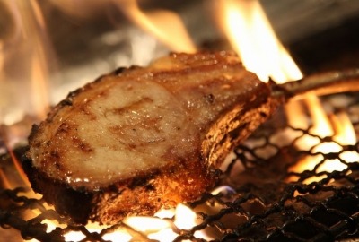48時間香草でマリネした骨付きリブロースを炭火で豪快に焼き上げました。寝かせることでよりうまみが濃く柔らかくジューシーさを増した美明豚の厚切りリブロースは当店の看板メニュー。ぜひ一度、お召し上がりください。