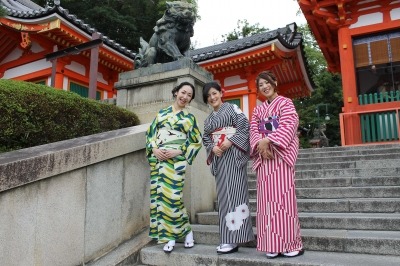祇園祭など、暑い夏にイベントが多い京都だからこそ、浴衣のレンタルにも対応。着物と同じく、おしゃれな浴衣を格安でお楽しみいただけます。もちろん、浴衣も小物一式、プロによる着付けがセットになった価格です。