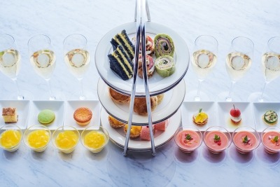 眩い夏の光が満ちる「ピーク ラウンジ」では、優雅なシャンパンタイムをアフタヌーンティースタイルでお贈りいたします。トマトやズッキーニなどを使ったフィンガーフードや、冷たいガスパチョが「ルイ・ロデレール」のエレガントな味わいを引き立て、涼やかなフレーバーのスイーツも心和む昼下がりを彩ります。ご友人との夏休み中のお集まりにもぜひどうぞ。